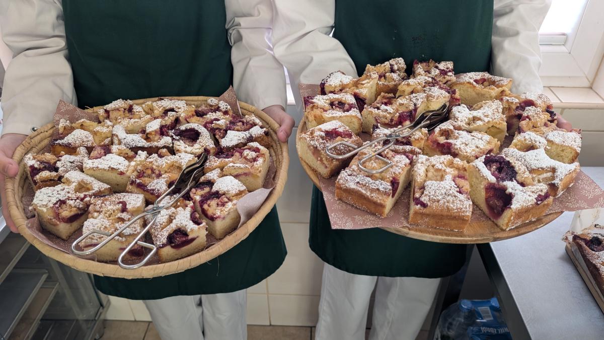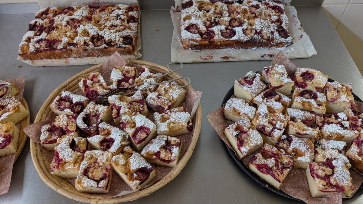 Wszyscy uczniowie degustowali ciasto ucierane ze śliwkami i kruszonką wykonane przez naszych uczniów.