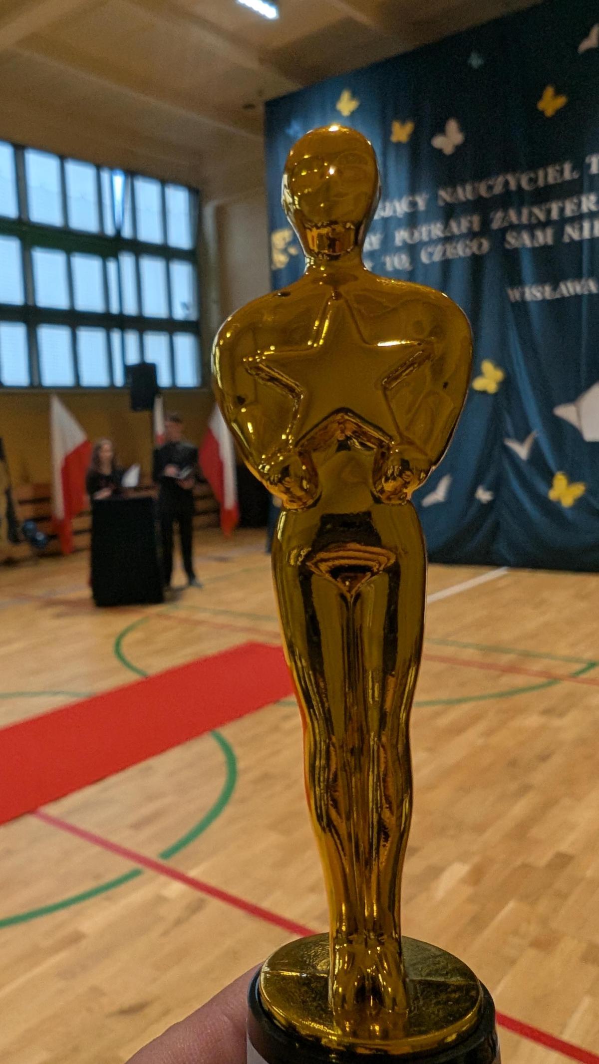 Jednym z najbardziej wyjątkowych momentów wydarzenia było wręczenie symbolicznych „Oskarów” nauczycielom i pracownikom szkoły. Uczniowie z humorem i sympatią wyróżnili pedagogów za ich pasję, kreatywność, cierpliwość i codzienne zaangażowanie.