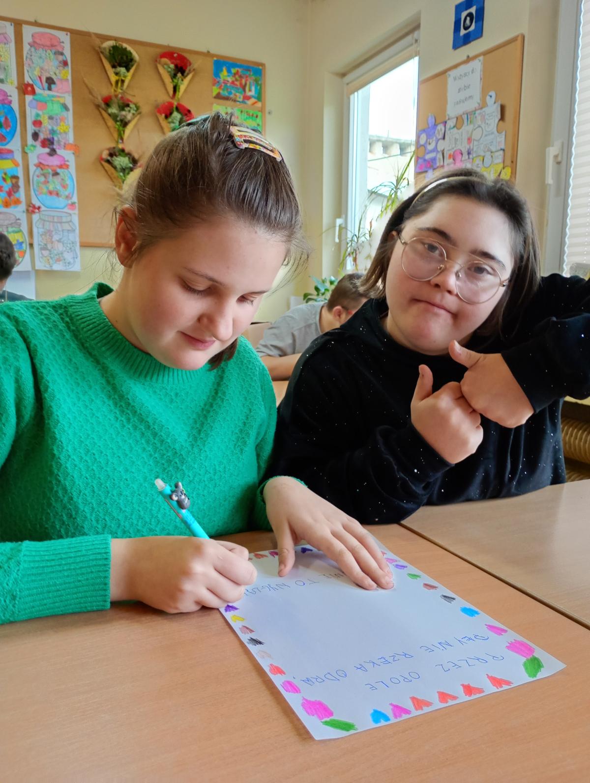 Wszyscy uczniowie z entuzjazmem i zaangażowaniem brali udział w tworzeniu pierwszego wspólnego listu.