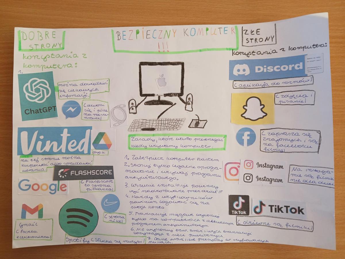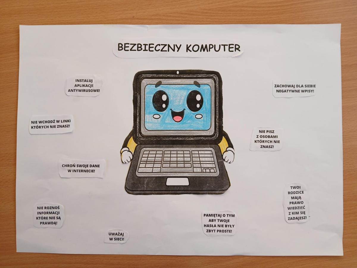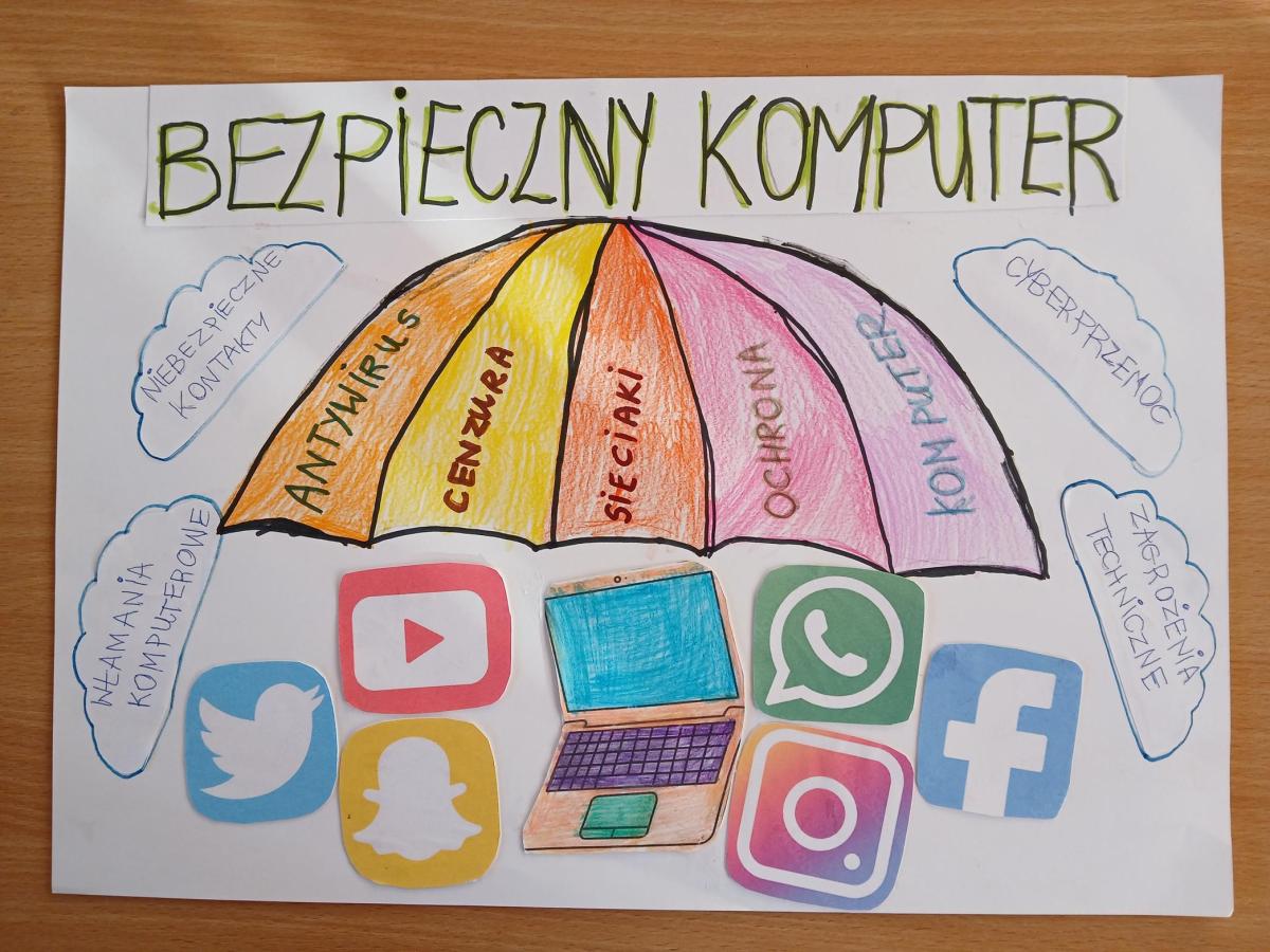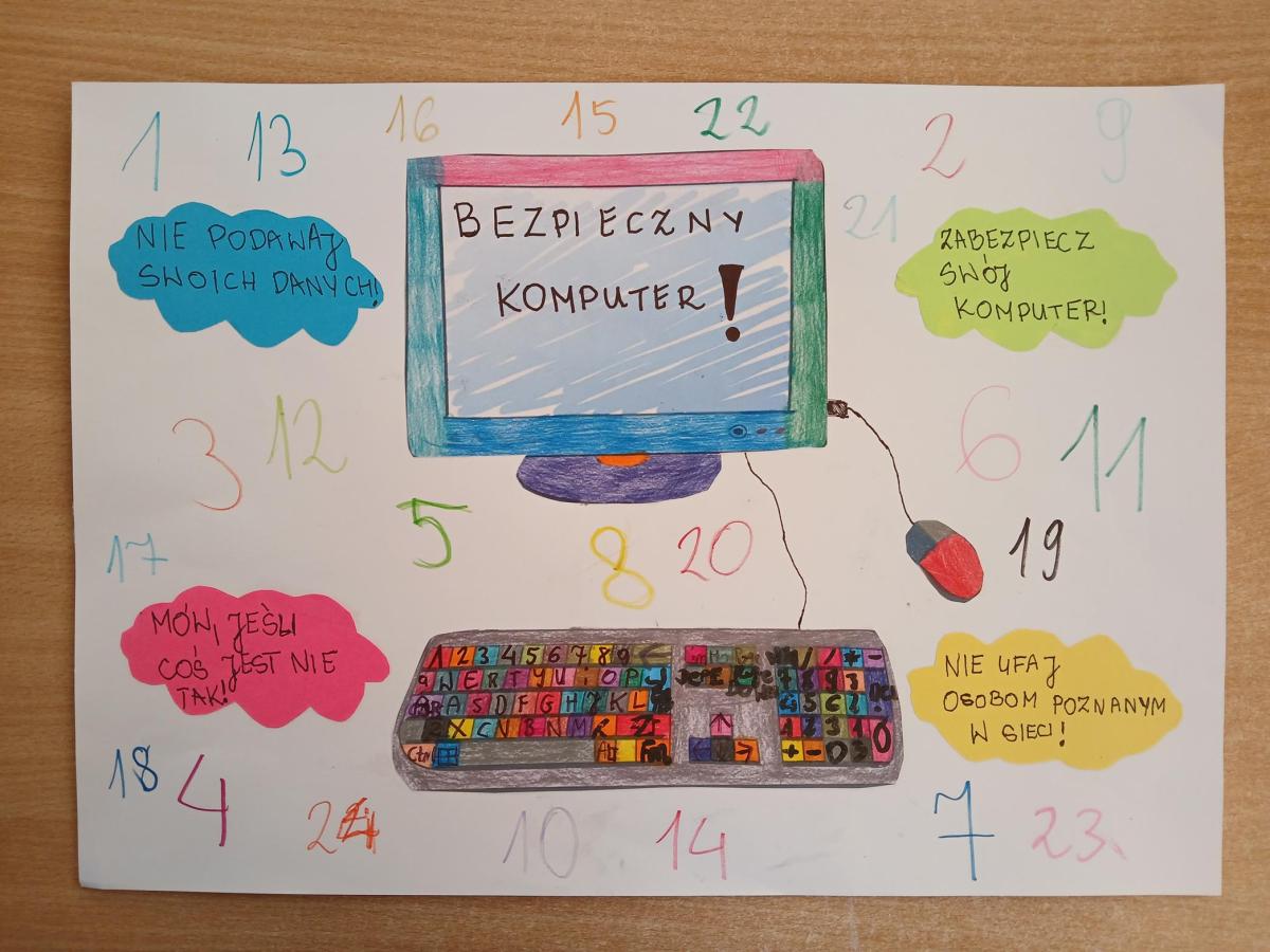 • plakaty w konkursie plastycznym pt. „Bezpieczny komputer  - higiena cyfrowa”: