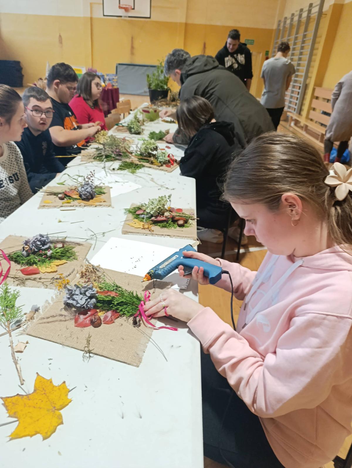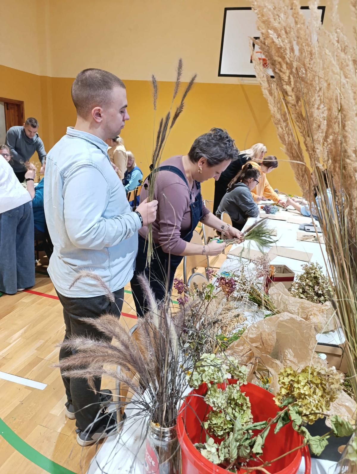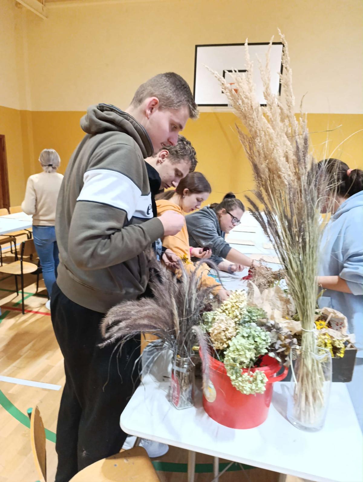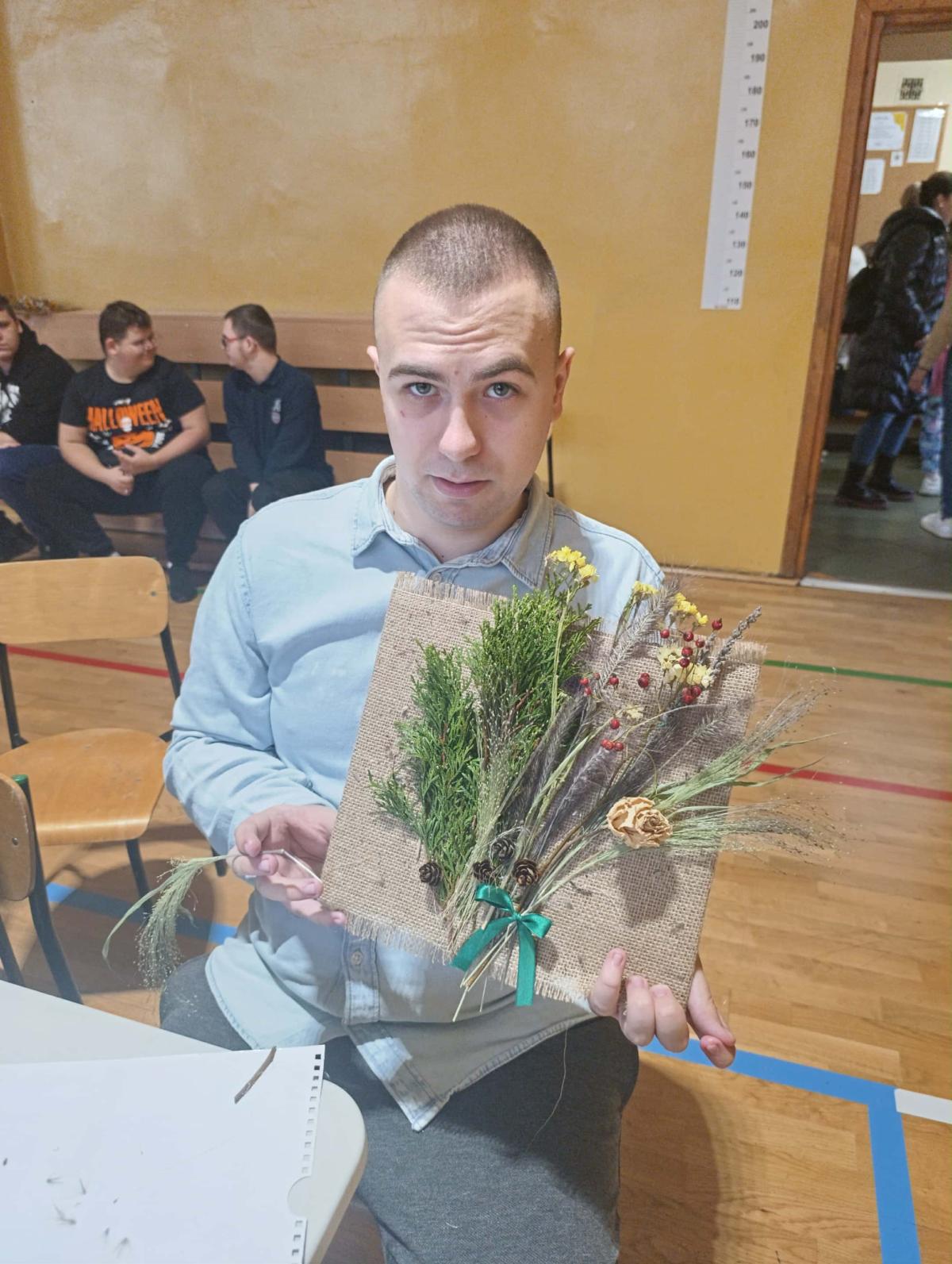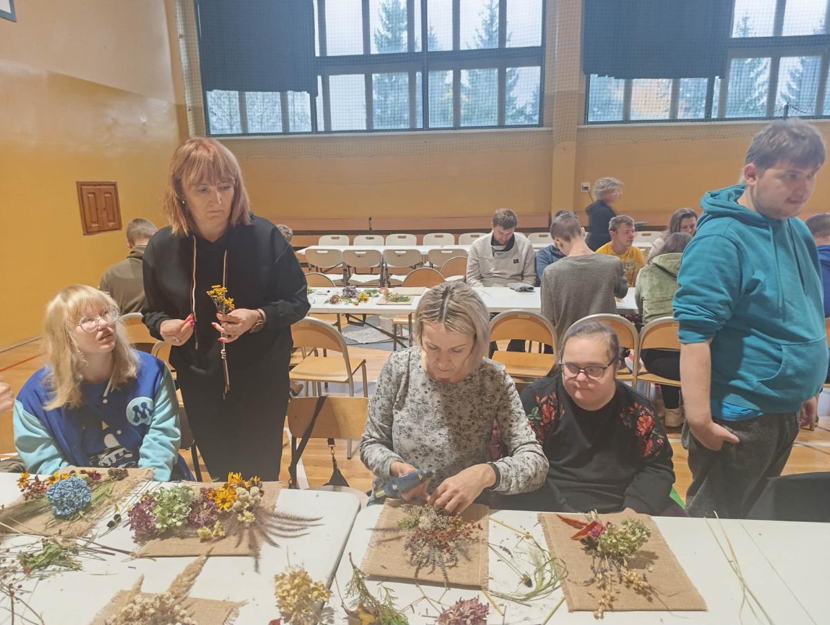 16 października odbyły się jesienne warsztaty rodzinne, w których udział wzięli uczniowie Szkoły Przysposabiającej do Pracy wraz z rodzicami. Podczas warsztatów panowała ciepła atmosfera, która kojarzy się z kalejdoskopem jesiennych barw i niepowtarzalnym zapachem lawendy, suszonych liści i kwiatów. Uczestnicy warsztatów wykonali piękne kompozycje z suszonych kwiatów, kłosów zbóż, krzewów, liści i rozmaitych darów jesieni– tworząc z nich niepowtarzalne układy. Każda praca była inna, pełna osobistego charakteru i jesiennej nostalgii. Takie spotkania to nie tylko okazja, by nauczyć się czegoś nowego, ale także by zatrzymać się na chwilę i odnaleźć radość w tworzeniu z naturą.