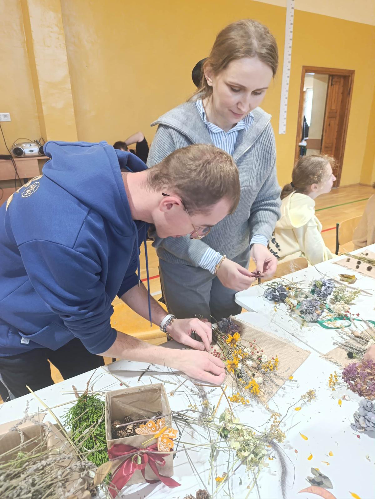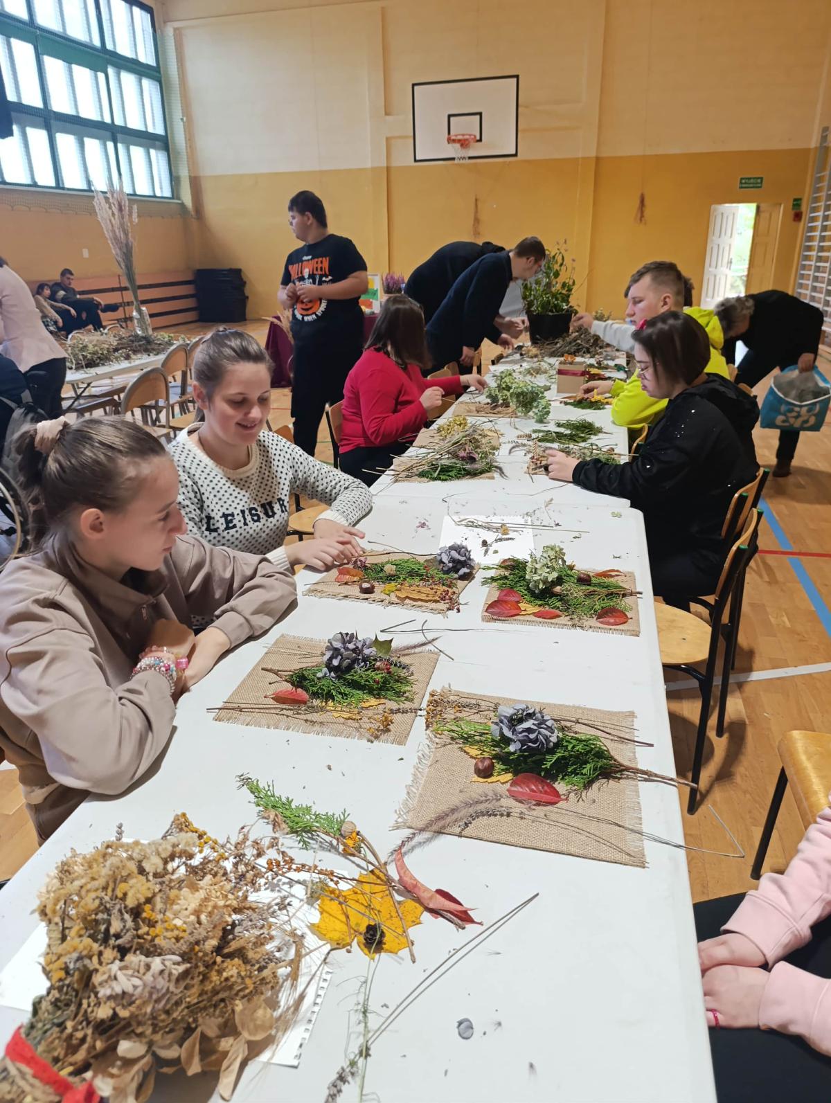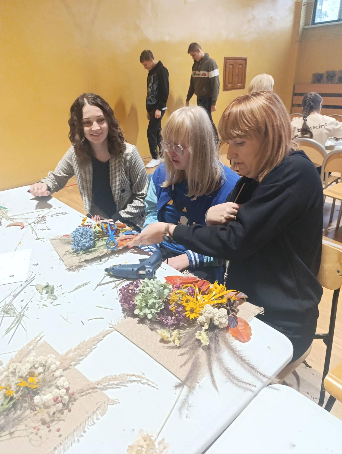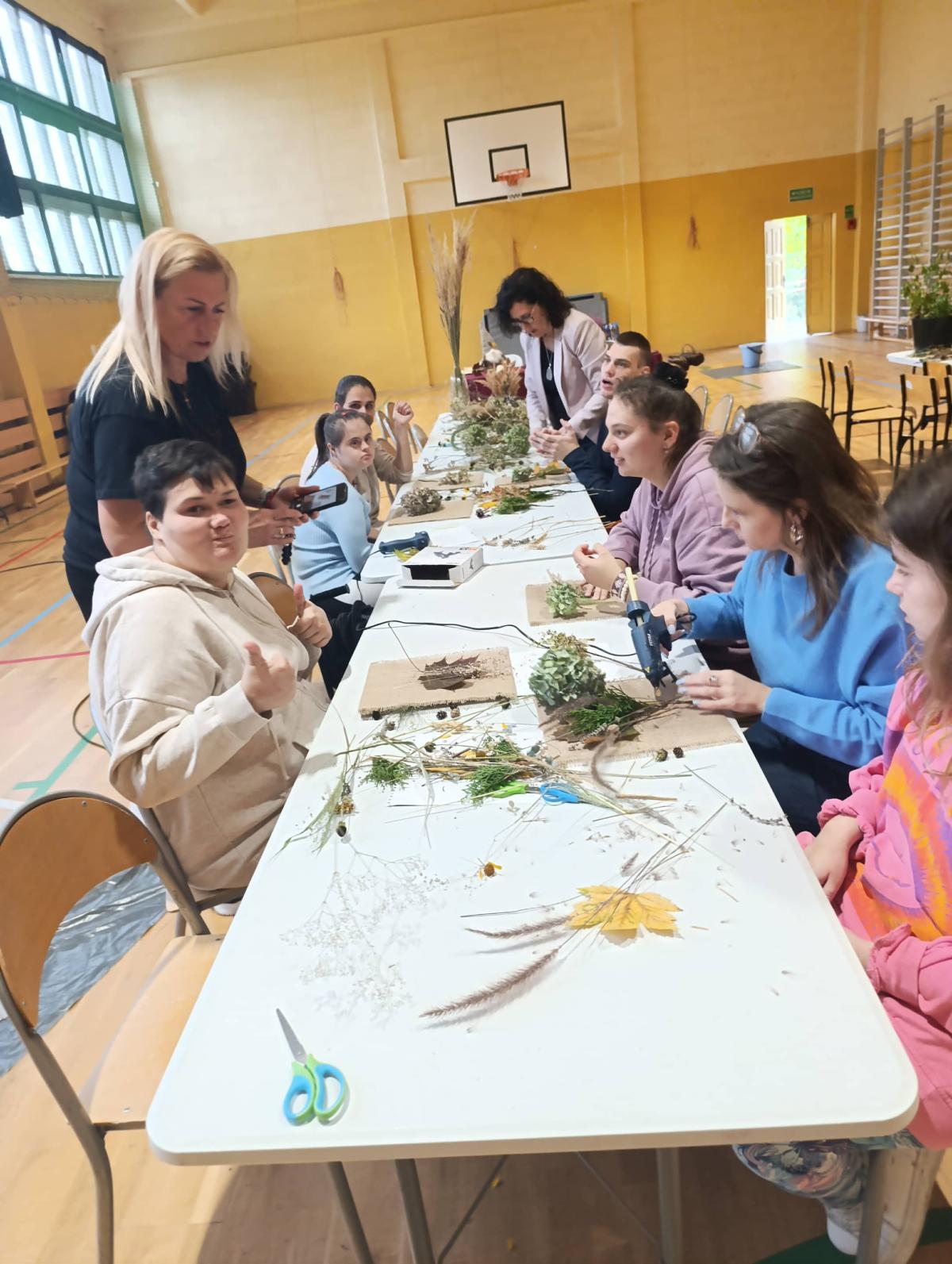 16 października odbyły się jesienne warsztaty rodzinne, w których udział wzięli uczniowie Szkoły Przysposabiającej do Pracy wraz z rodzicami. Podczas warsztatów panowała ciepła atmosfera, która kojarzy się z kalejdoskopem jesiennych barw i niepowtarzalnym zapachem lawendy, suszonych liści i kwiatów. Uczestnicy warsztatów wykonali piękne kompozycje z suszonych kwiatów, kłosów zbóż, krzewów, liści i rozmaitych darów jesieni– tworząc z nich niepowtarzalne układy. Każda praca była inna, pełna osobistego charakteru i jesiennej nostalgii. Takie spotkania to nie tylko okazja, by nauczyć się czegoś nowego, ale także by zatrzymać się na chwilę i odnaleźć radość w tworzeniu z naturą.