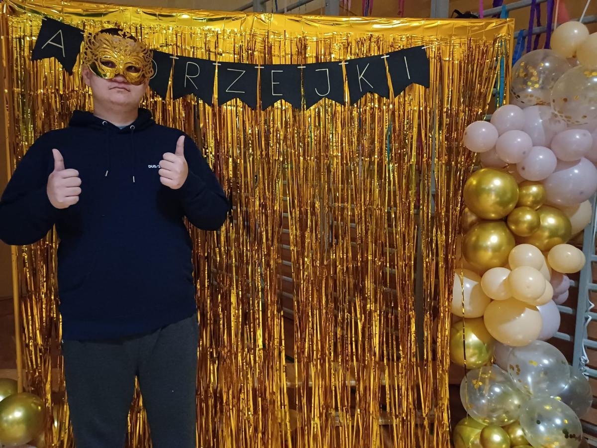 Dużą popularnością cieszyła się ścianka fotograficzna, przygotowana przez panią Paulinę oraz panią Anię. Uczniowie chętnie wykonywali pamiątkowe zdjęcia, które pozwolą im na długo zachować wspomnienia z balu.