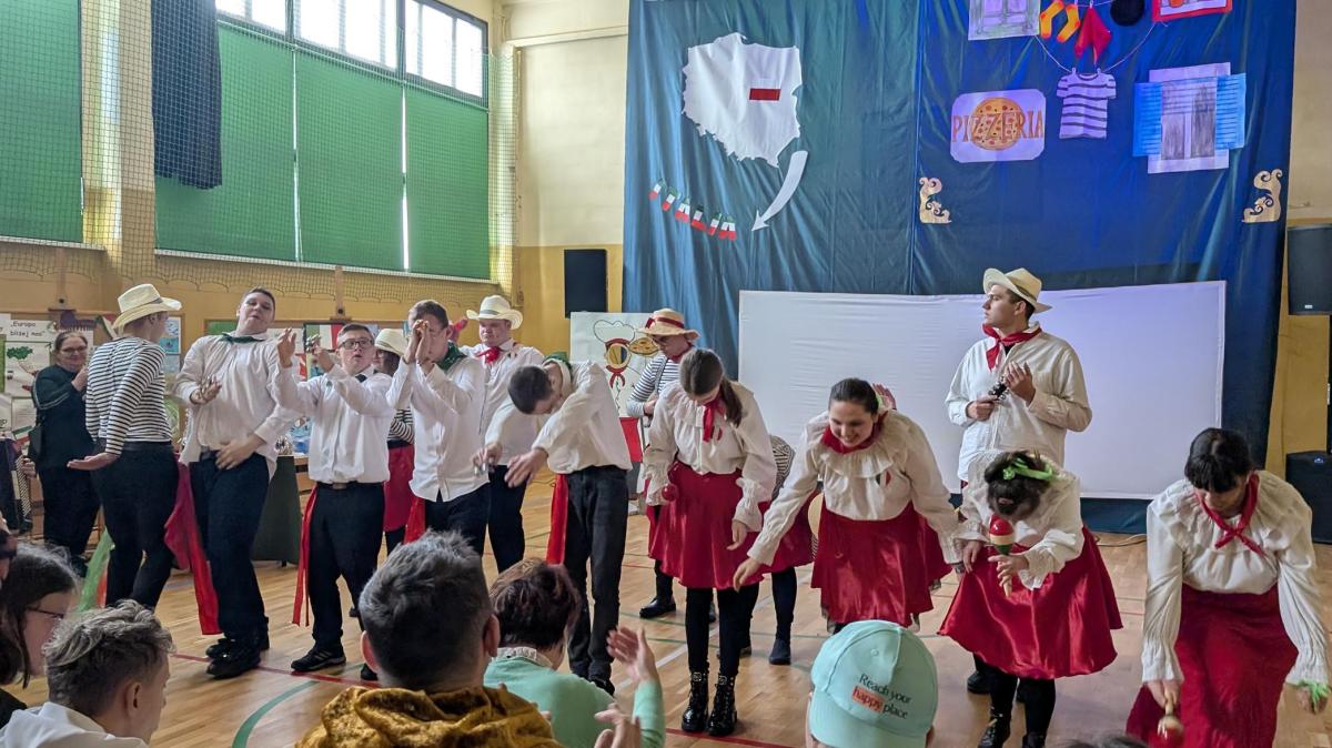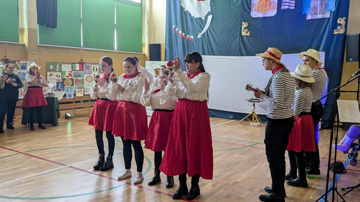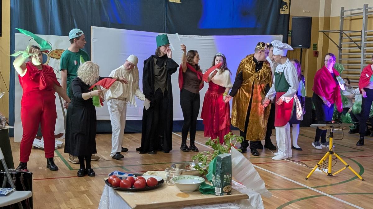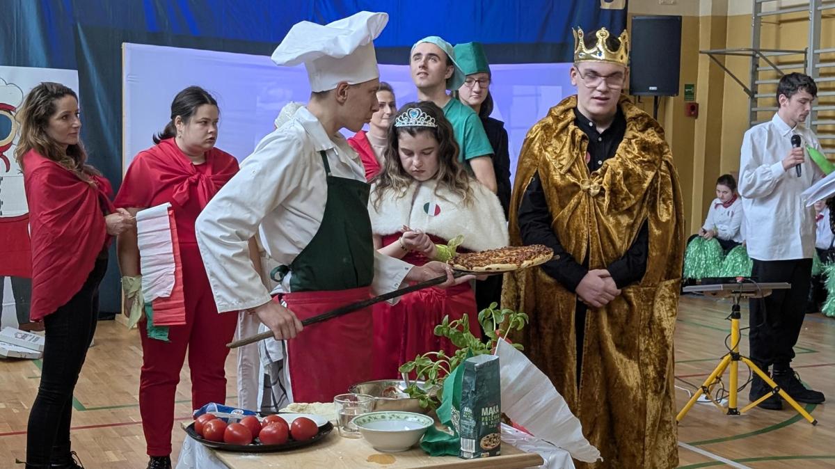 Ważnym elementem spotkania była „Kulinarna podróż przez smaki Włoch” – wystawa fotograficzna włoskich potraw oraz symboliczny poczęstunek, które spotkały się z dużym zainteresowaniem uczestników. Finałem wydarzenia była zabawa w klimacie włoskim, integrująca uczniów i podkreślająca radosny charakter spotkania.
