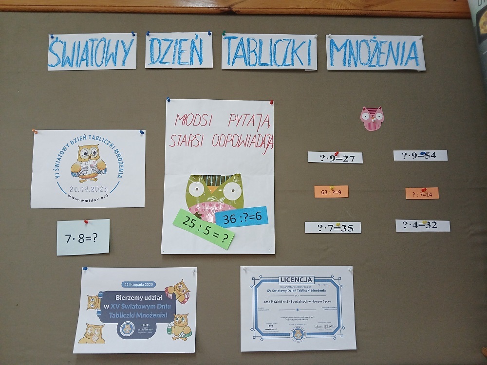 W dniach 17 - 28.11.2025 r. w ramach przypadającego 21 listopada 2025 r. odbył się XV pod hasłem: „Młodsi sprawdzają, czy starsi tabliczkę mnożenia znają!”. Uczniowie przypominali sobie tabliczkę mnożenia w trakcie różnych zajęć i pracy na platformie edukacyjnej instaling, przeprowadzono konkurs pt. „Mistrz mnożenia” w formie quizu w aplikacji kahoot.it.