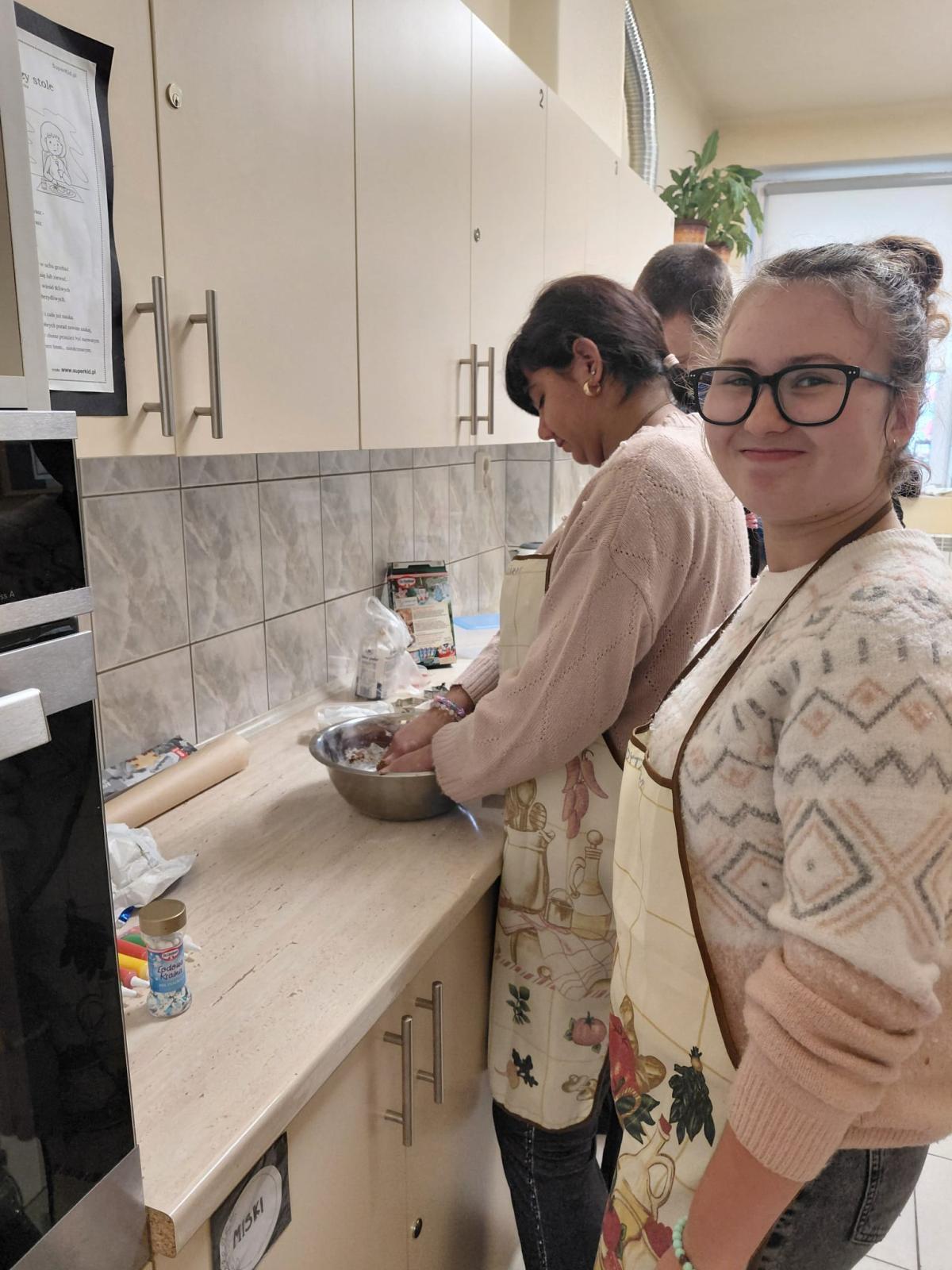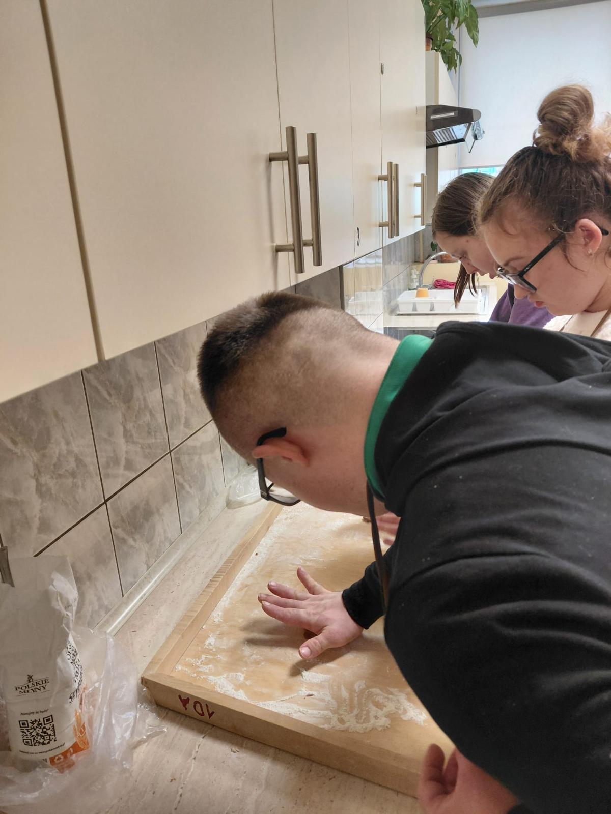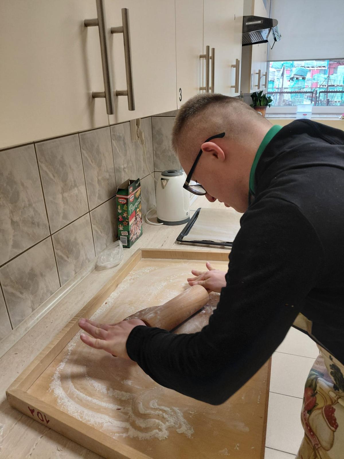 W ramach modułu 2 klasa 1PBn na zajęciach kulinarnych upiekła świąteczne pierniczki. Na początku lekcji tak jak zawsze uczniowie przypomnieli sobie o zasadach bezpieczeństwa i higieny pracy, zapoznali się z przepisem i przygotowali potrzebne składniki. Wyrobili i rozwałkowali ciasto, a następnie wykrawali przeróżne kształty pierniczków. Po upieczeniu w całej klasopracowni unosił się piękny, korzenny zapach.