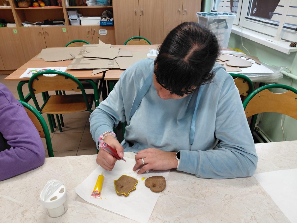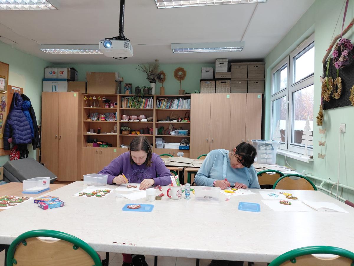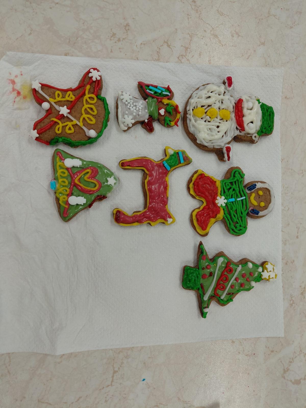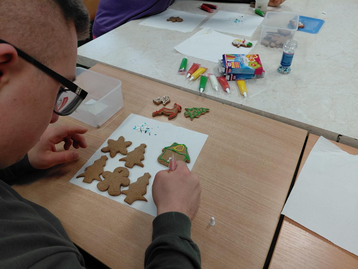 W ramach modułu 8 uczniowie podczas wspólnego dekorowania pierniczków rozwijali umiejętności porozumiewania się, wzmacniali wzajemne relacje i praktykowali stosowanie form grzecznościowych, wymieniając się kolorowymi pisakami i posypkami do dekoracji ciasteczek. Efektem ich dobrej współpracy są piękne, kolorowe, świąteczne pierniczki.