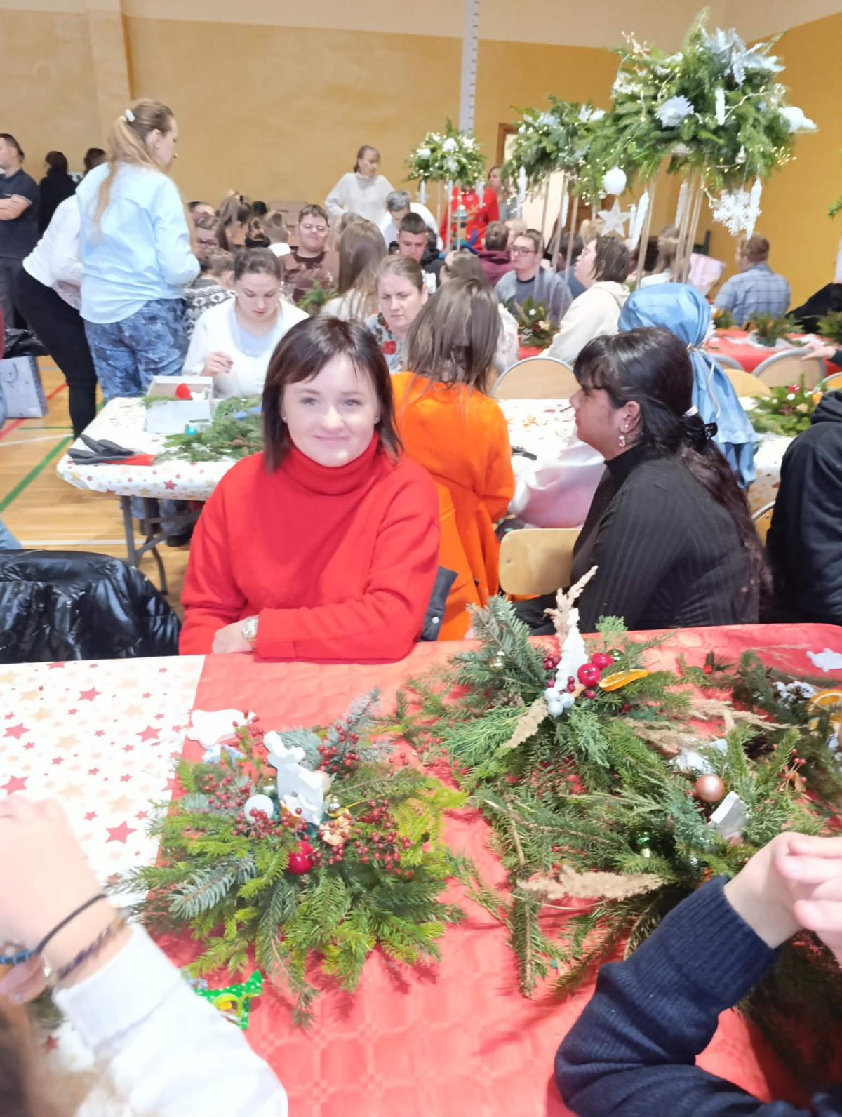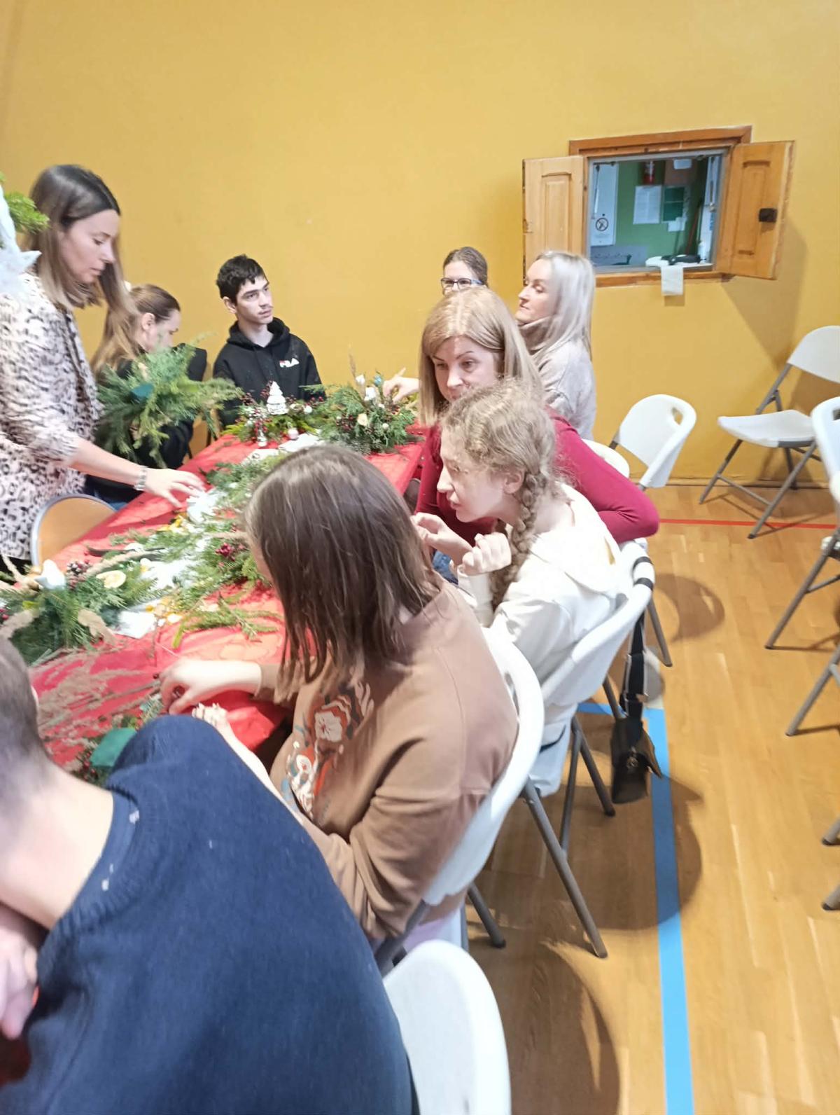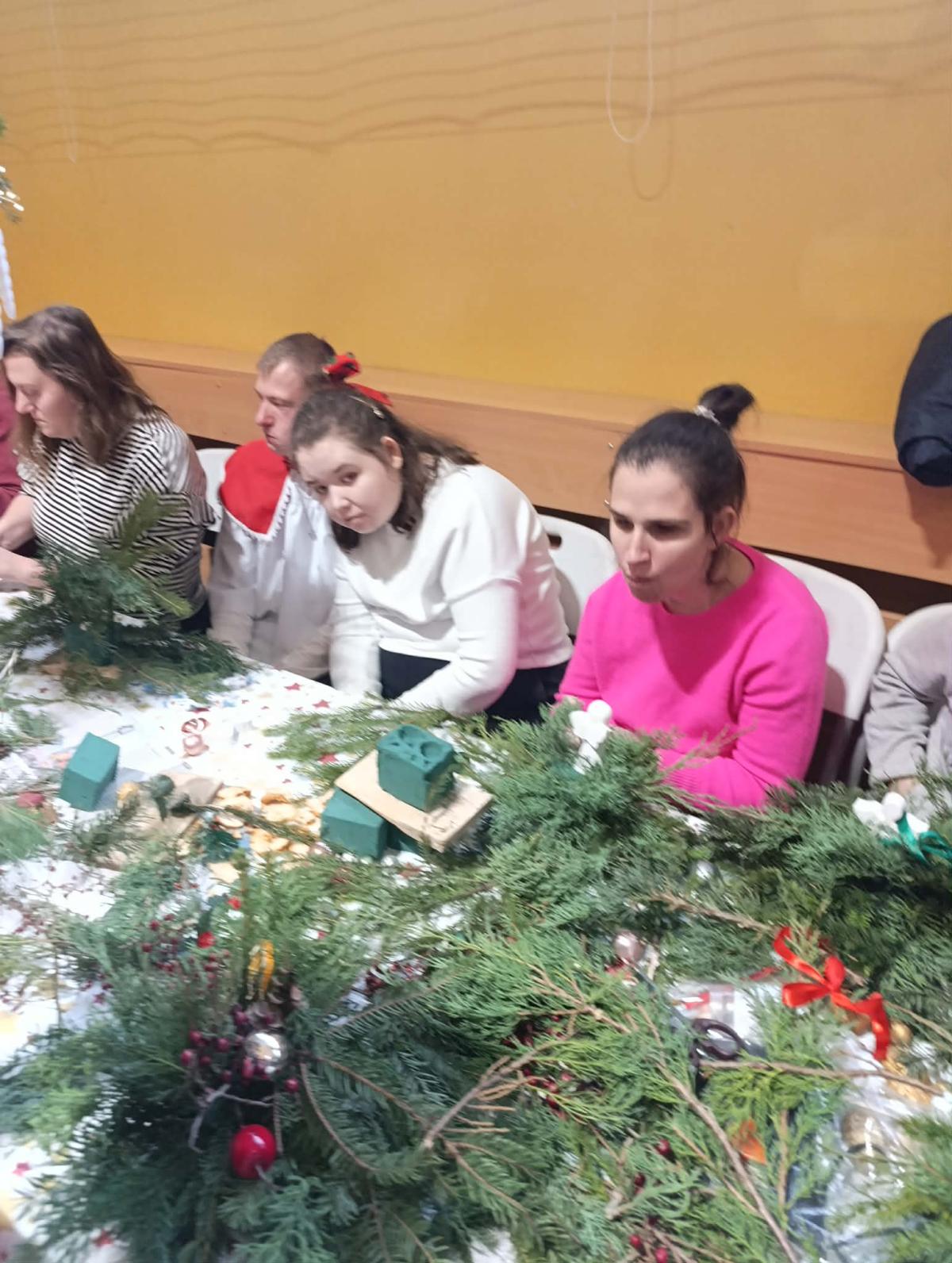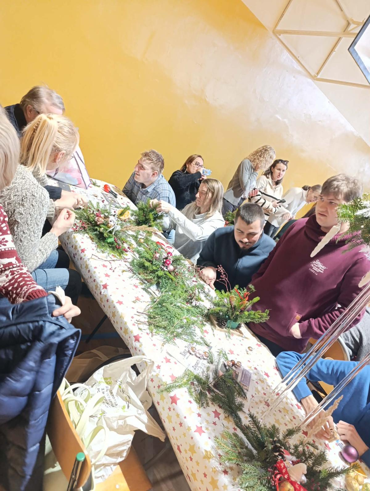 Podczas warsztatów uczestnicy wspólnie wykonywali stroiki, które będą ozdobą niejednego domu podczas Świąt Bożego Narodzenia. Był to czas sprzyjający rozmowom, współpracy, wzmacnianiu więzi rodzinnych i koleżeńskich.