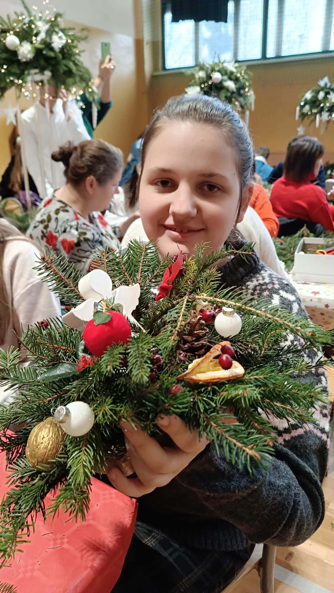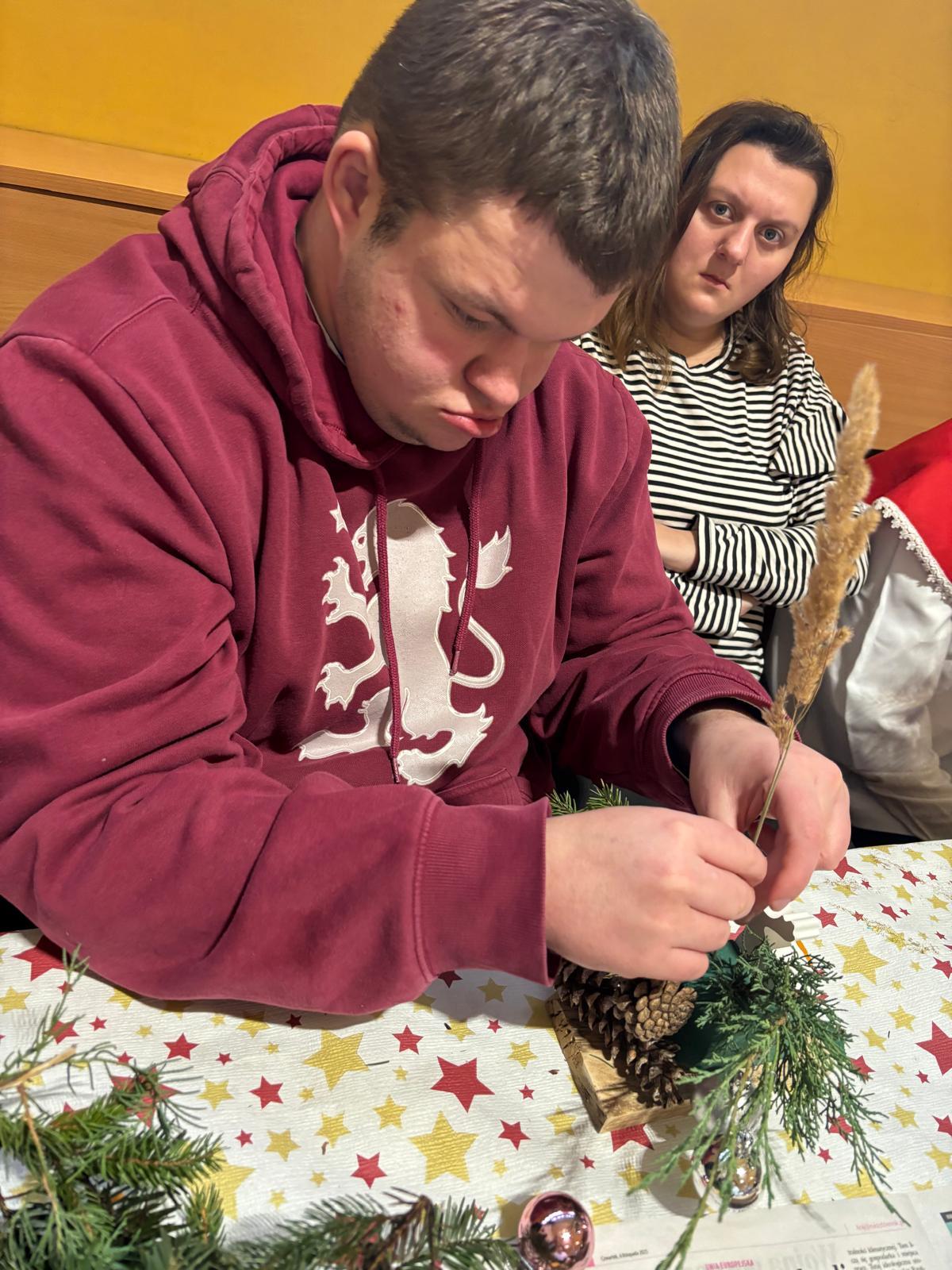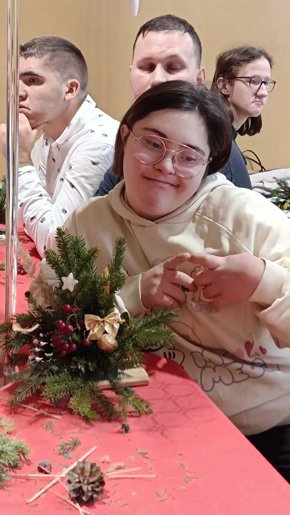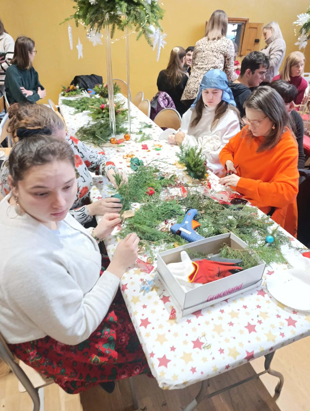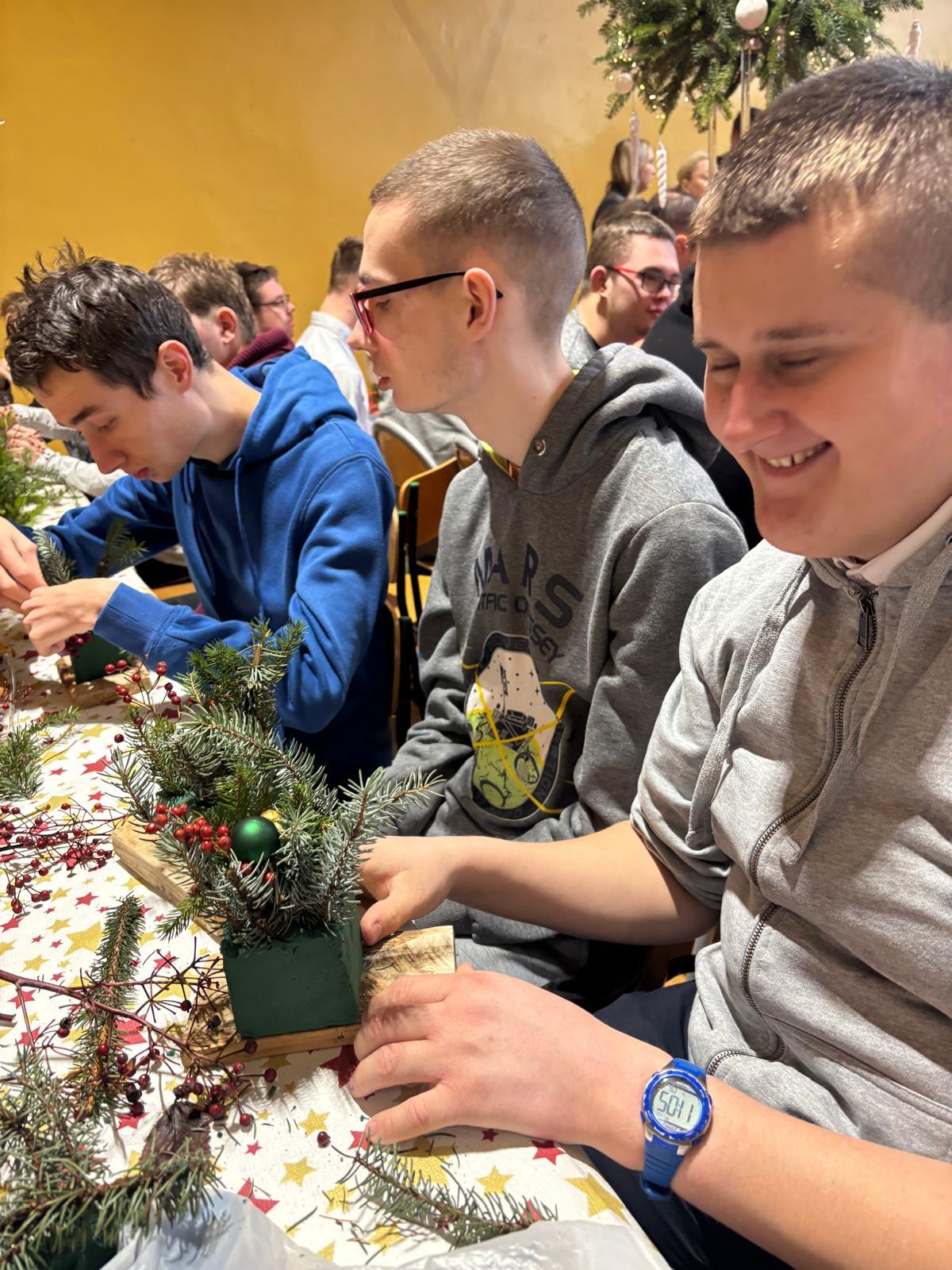 Podczas warsztatów uczestnicy wspólnie wykonywali stroiki, które będą ozdobą niejednego domu podczas Świąt Bożego Narodzenia. Był to czas sprzyjający rozmowom, współpracy, wzmacnianiu więzi rodzinnych i koleżeńskich.