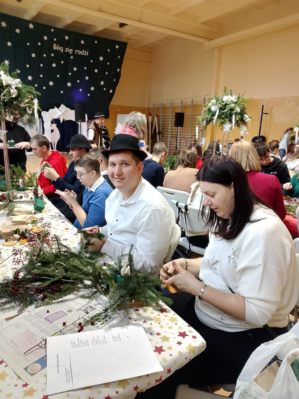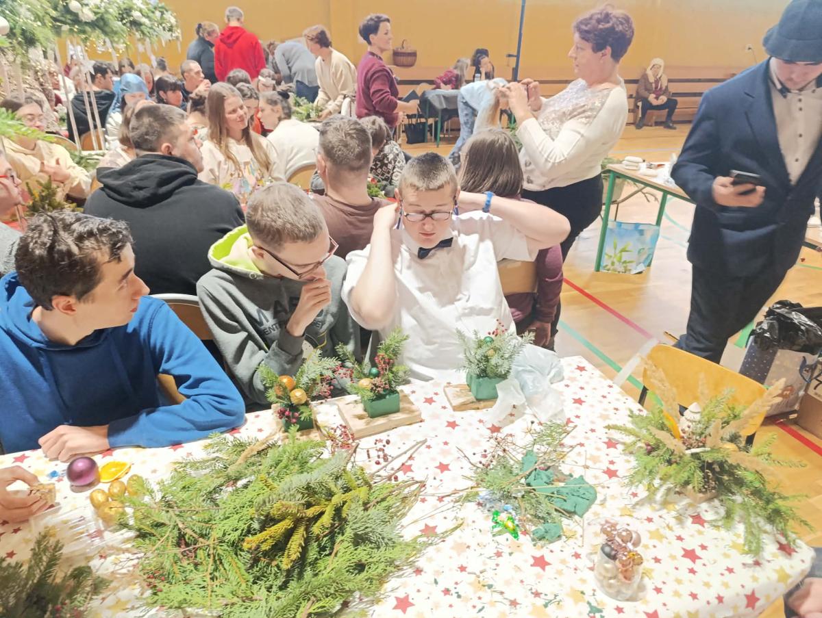 Dnia 17 grudnia odbyły się świąteczne warsztaty rodzinne o tematyce bożonarodzeniowej. W wydarzeniu wzięli udział uczniowie Szkoły Przysposabiajacej do Pracy wraz z rodzicami, tworząc ciepłą, radosną i pełną świątecznego klimatu atmosferę.