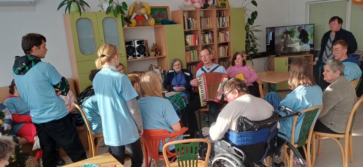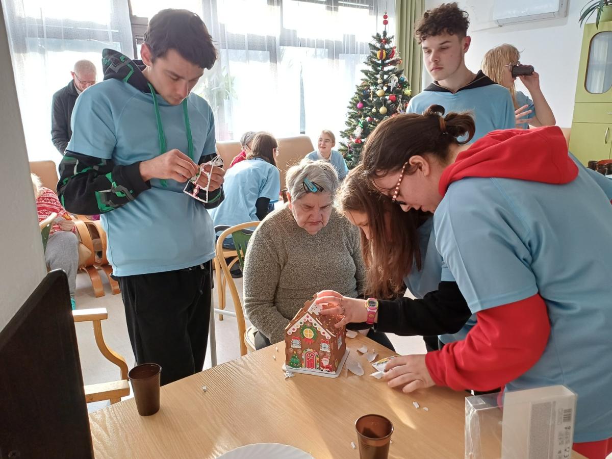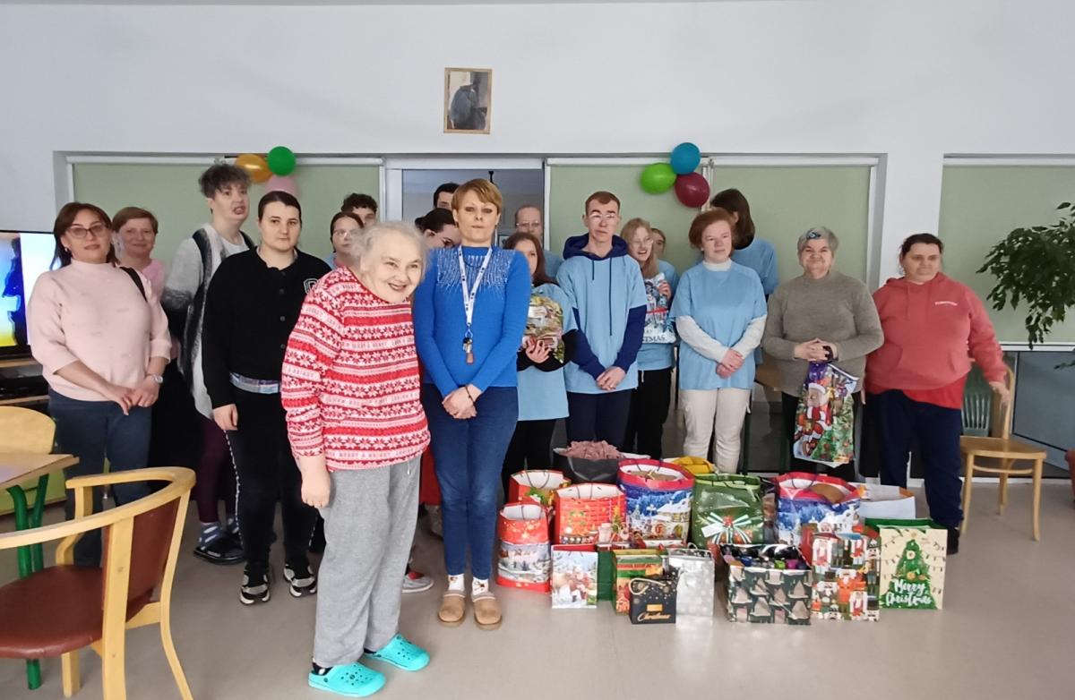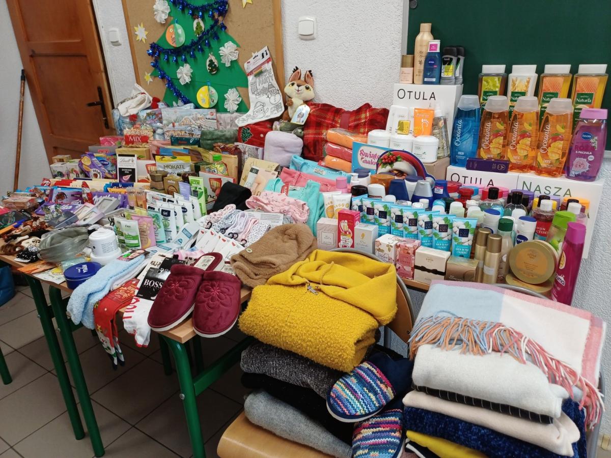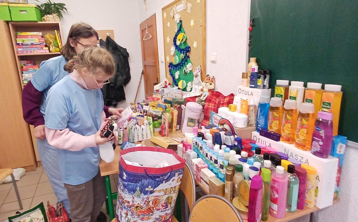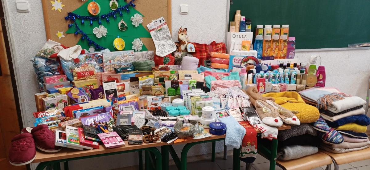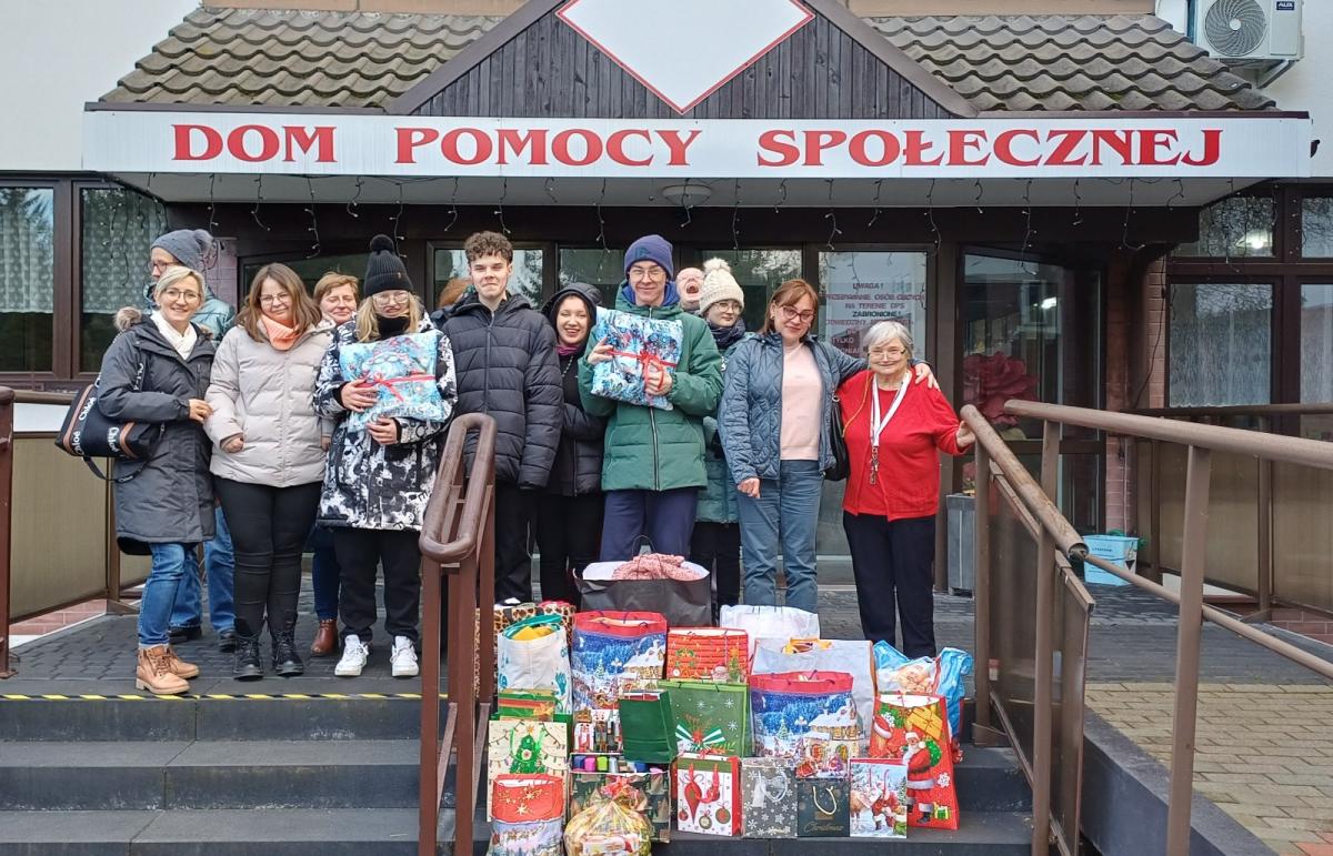 Święta Bożego Narodzenia to czas, w którym mocniej niż kiedykolwiek pochylamy się nad drugim człowiekiem i dzielimy dobrocią. Osoby przebywające w Domach Pomocy Społecznej czują się często osamotnione i porzucone w te bardzo rodzinne święta. Mogliśmy choć troszkę uprzyjemnić im ten czas spełniając ich skromne pragnienia. Panie z DPS napisały listy do Świętego Mikołaja, w którym prosiły m.in. o: słodycze, ciastka, herbatę, kawę, kosmetyki, ciepłe skarpety, rajstopy, pantofle. Wydrukowane listy od Pań zostały umieszczone na gazetce szkolnego wolontariatu, dzięki czemu każdy mógł przeczytać o co proszą nadawcy listów. Wolontariusze pod kierunkiem opiekunów przeprowadzili zbiórkę darów dla Pań i przygotowali paczki. W dniu 18.12.2025 r. udali się do Domu Pomocy Społecznej w celu złożenia świątecznych życzeń i przekazania zebranych darów. Jak zwykle zostali bardzo ciepło przyjęci. Czas upłynął na miłych rozmowach, wspólnym czytaniu świątecznych opowieści w ramach realizacji projektu „Narodowego Programu Rozwoju Czytelnictwa” oraz na radosnym kolędowaniu. Wszystkim, którzy wsparli naszą akcję z serca dziękujemy.
