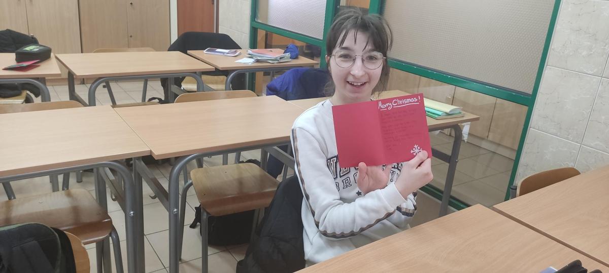 W przerwie świątecznej dotarły do nas kartki z życzeniami od naszych rówieśników z Włoch. Dostarczyły nam one wiele radości, tym bardziej, że nasi przyjaciele skierowali do nas życzenia nie tylko w języku angielskim, ale także parę słów po polsku. Dziękujemy!