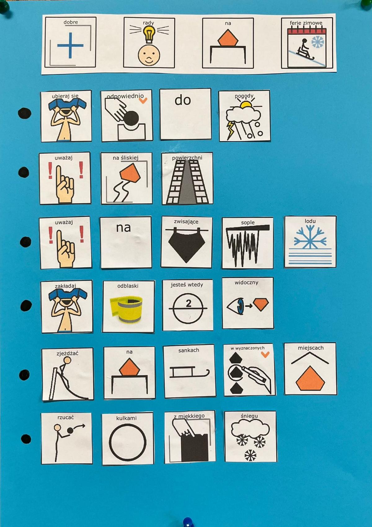 W ramach modułu 3 klasy 1PpA, 1PBn, 1 PpD i 2PpA na zajęciach z funkcjonowania osobistego i społecznego przypomniały sobie o zasadach bezpieczeństwa podczas ferii zimowych. Uczniowie obejrzeli film edukacyjny, a następnie uzupełniali karty pracy, rozwiązywali zagadki i powtórzyli numery alarmowe. Z piktogramów stworzyli zasady bezpiecznego zachowania w zimie.