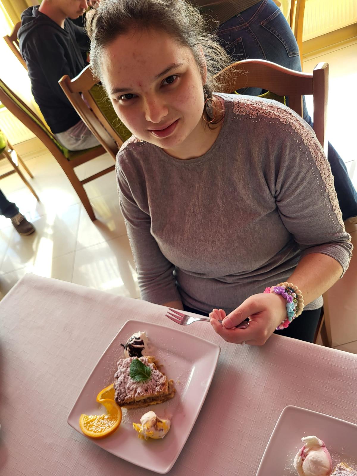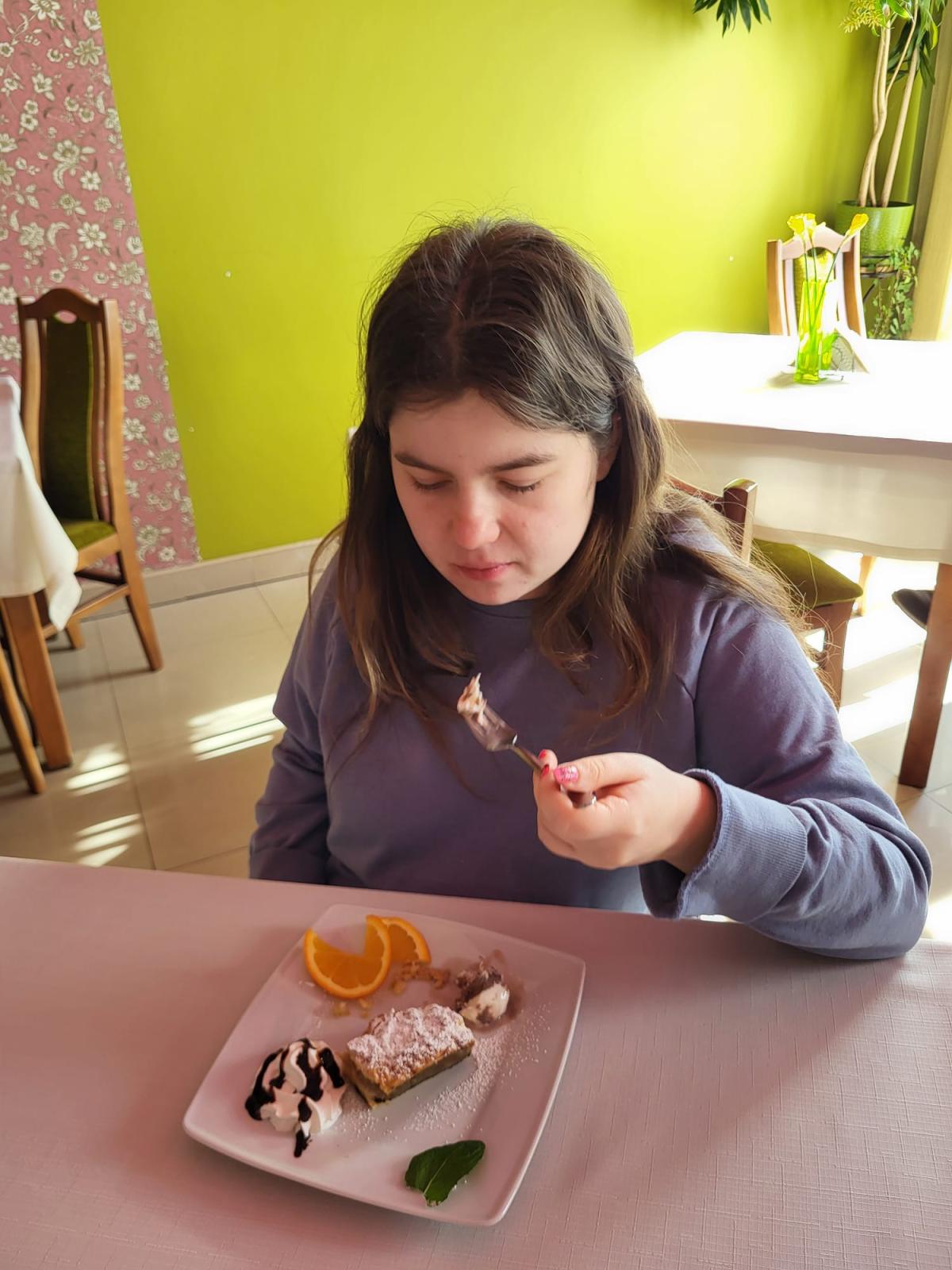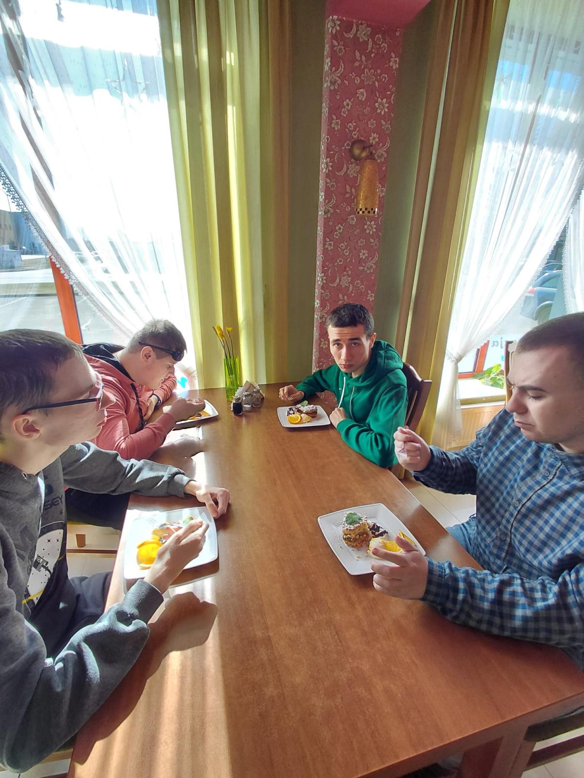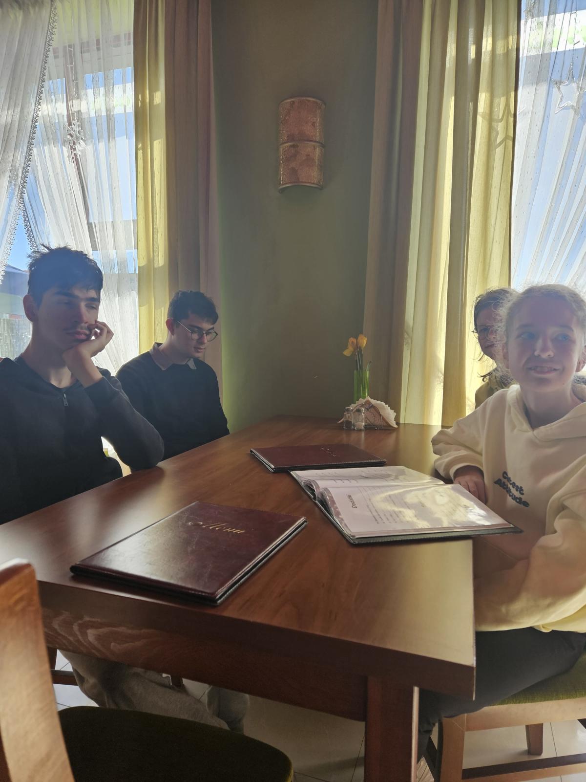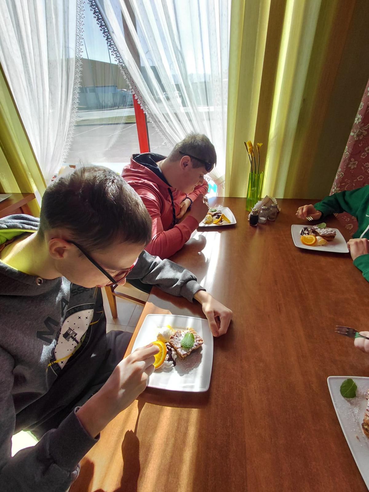 W ramach modułu 3, 6, 7 i 8 podczas zajęć kulinarnych oraz funkcjonowania osobistego i społecznego klasy: 1PpA, 1PBn, 1PpD, 3PpE i 3PpF wybrały się do kawiarni. Podczas tej wizyty przypomniały sobie zasady prawidłowego zachowania się w miejscach publicznych, a także utrwaliły dobre maniery przy stole i stosowanie form grzecznościowych. Zapoznały się też z zawodem kelnera. Pani kelnerka opowiedziała jak wygląda jej codzienna praca. Uczniowie przeglądnęli kartę MENU i złożyli zamówienie. Po pysznym deserze wszyscy w dobrych humorach wrócili do szkoły, po drodze utrwalając sobie zasady bezpieczeństwa w ruchu drogowym.