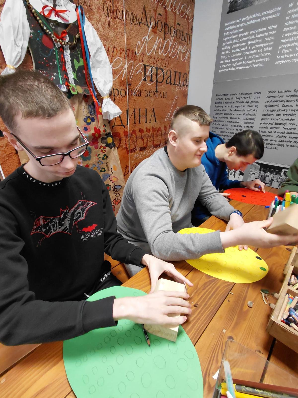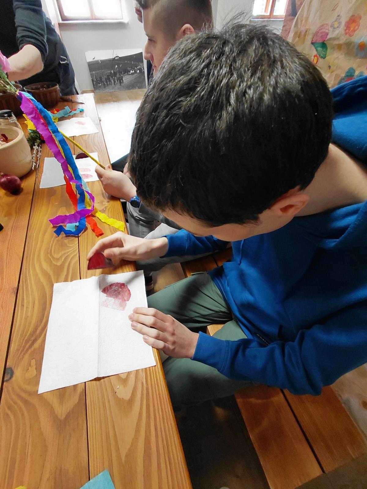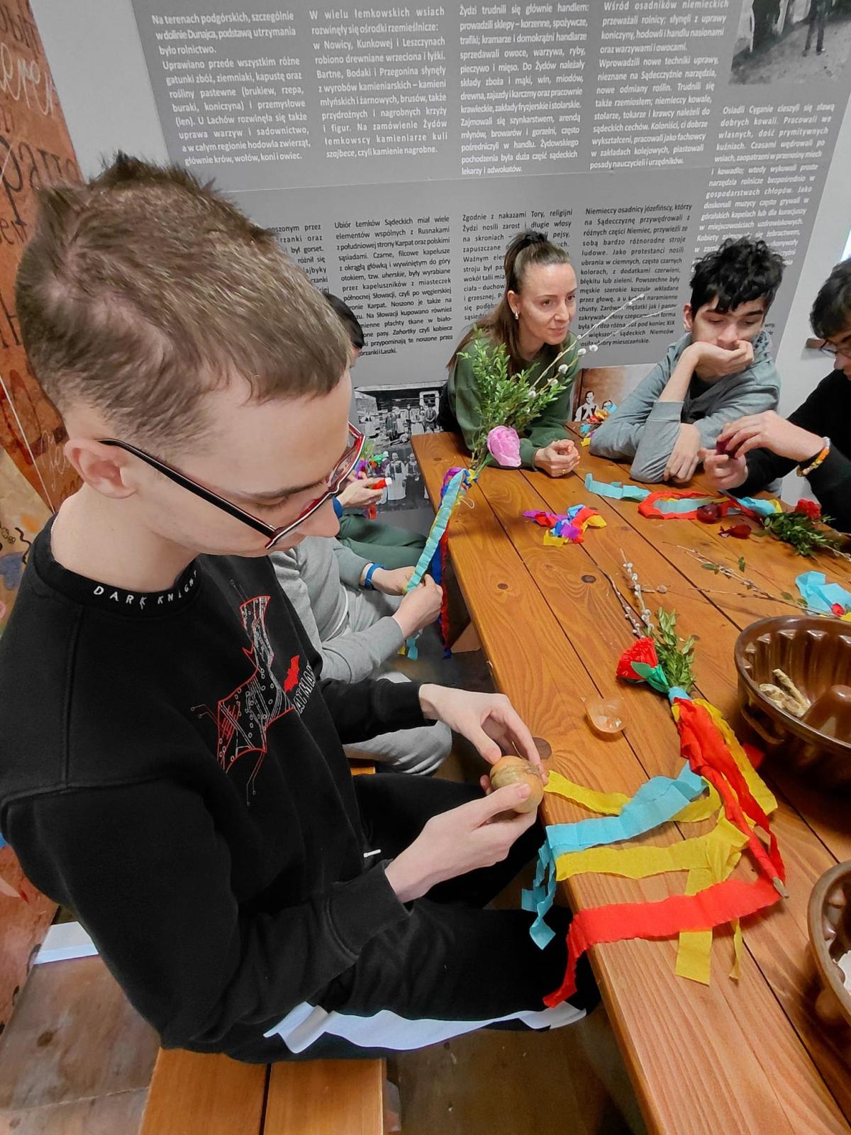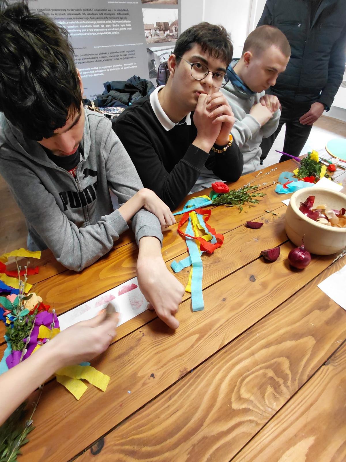 W ramach modułu 7 uczniowie klasy 1PpA, 1PBn i 1PpD udali się do Sądeckiego Parku Etnograficznego, aby uczestniczyć w warsztatach muzealnych o tradycjach obchodzenia Świąt Wielkanocnych dawniej i dziś. Podczas warsztatów uczniowie zrobili piękne palmy wielkanocne z bazi, bukszpanu i kolorowej bibuły. Poznali też ekologiczne sposoby zdobienia, odbijając na kartce papieru pieczątki z buraków. Sprawdzili również jak głośno potrafi odezwać się tradycyjna kołatka kościelna. Dzięki tym warsztatom uczniowie dowiedzieli się jak przygotować się do świąt z poszanowaniem tradycji naszych przodków. Ponadto utrwalili sobie zasady kulturalnego zachowania się w miejscach publicznych.