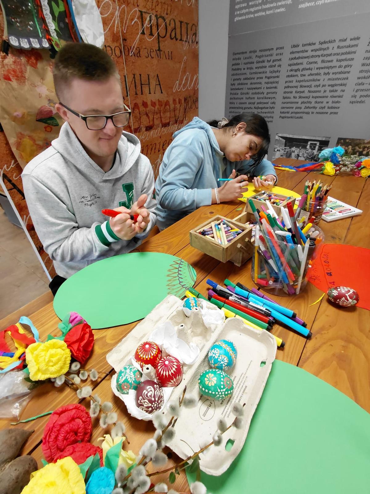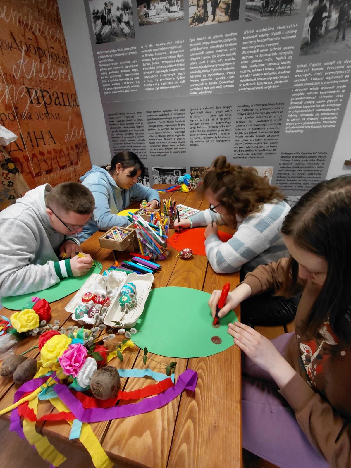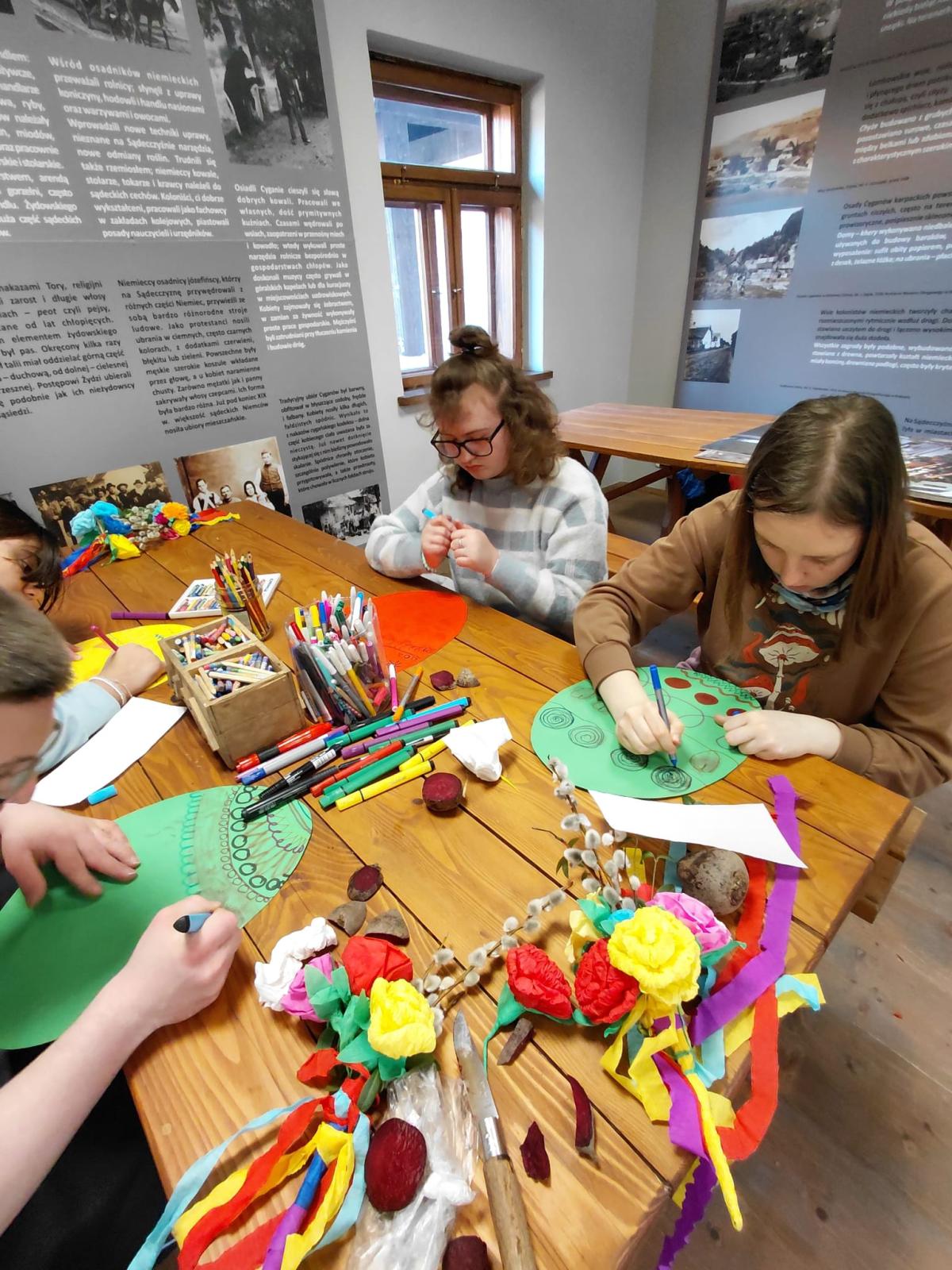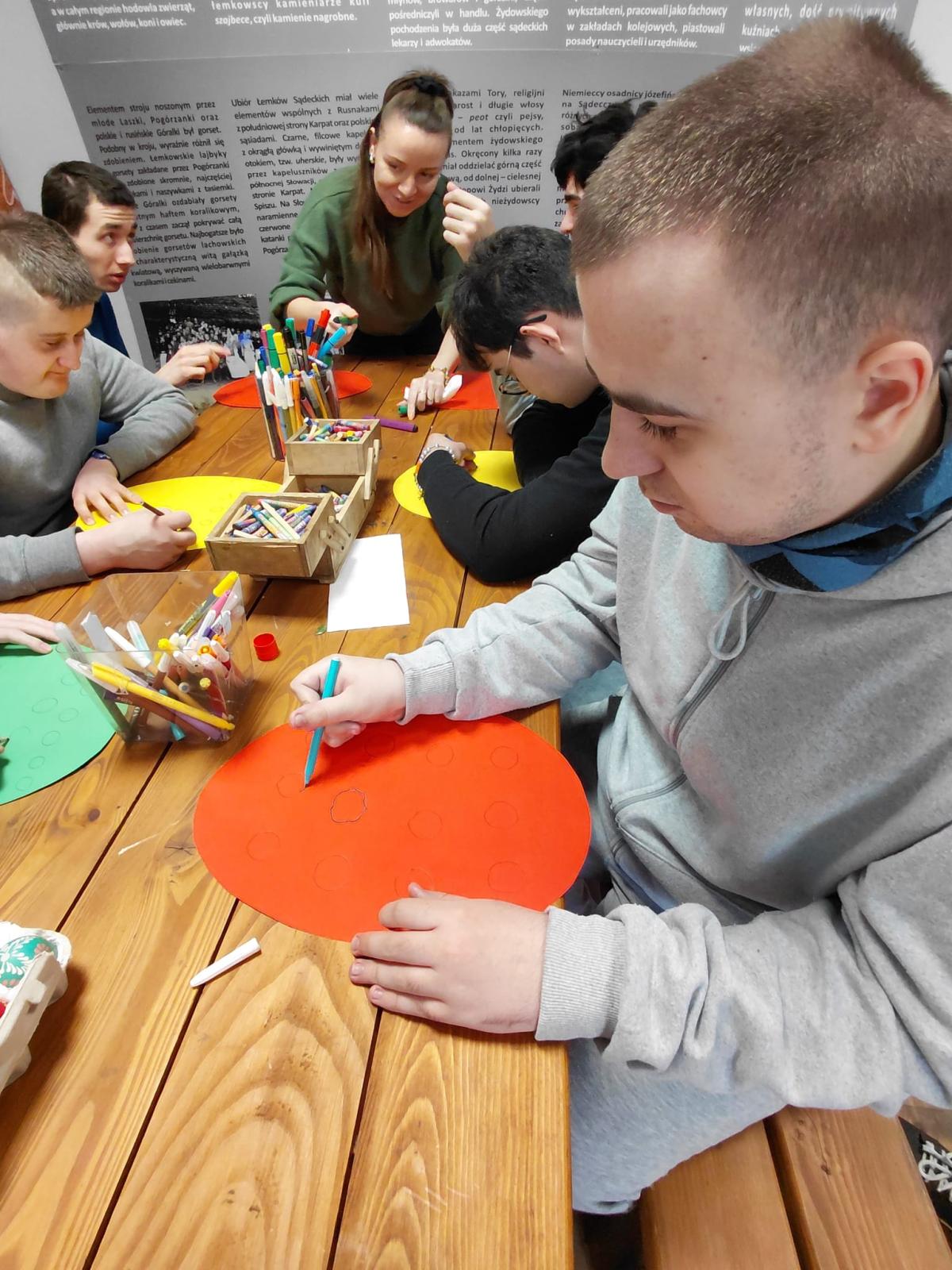 W ramach modułu 7 uczniowie klasy 1PpA, 1PBn i 1PpD udali się do Sądeckiego Parku Etnograficznego, aby uczestniczyć w warsztatach muzealnych o tradycjach obchodzenia Świąt Wielkanocnych dawniej i dziś. Podczas warsztatów uczniowie zrobili piękne palmy wielkanocne z bazi, bukszpanu i kolorowej bibuły. Poznali też ekologiczne sposoby zdobienia, odbijając na kartce papieru pieczątki z buraków. Sprawdzili również jak głośno potrafi odezwać się tradycyjna kołatka kościelna. Dzięki tym warsztatom uczniowie dowiedzieli się jak przygotować się do świąt z poszanowaniem tradycji naszych przodków. Ponadto utrwalili sobie zasady kulturalnego zachowania się w miejscach publicznych.